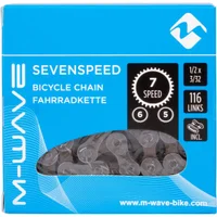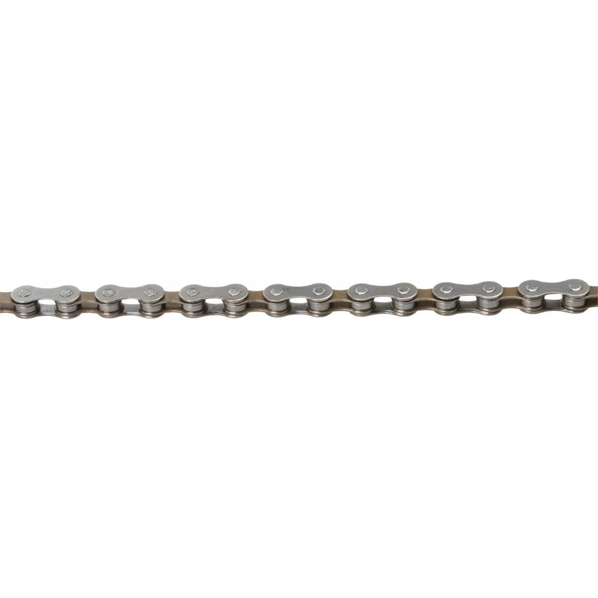 Brown bike chain with 116 links designed for 7 6 or 5 speed drivetrains. Supplied with a master link for easy installation and secure closure ensuring smooth reliable shifting.