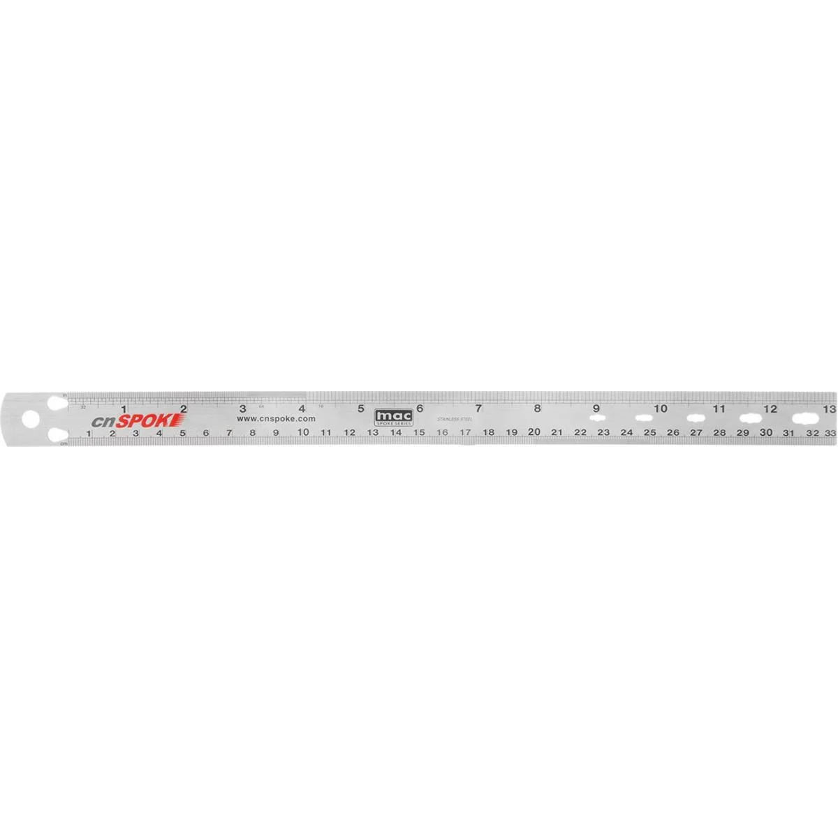 Stainless steel ruler for accurate spoke length and nipple size measurements.
