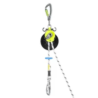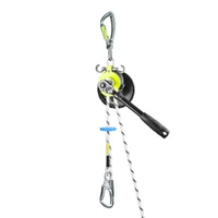 Versatile descent and rescue device with integrated winch function. Operable electrically with a cordless drill or manually with a ratchet or hand wheel. Allows lifting of persons and reduces load on the safety chain for subsequent safe lowering. Supplied pre-assembled with 10.5 mm kernmantle rope and certified end terminations. Standard lengths available and special lengths on request.
