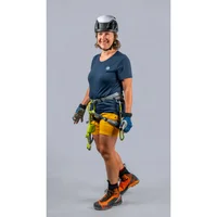 High-end via ferrata set designed for smooth handling and tangle-free freedom of movement. The triple-jointed swivel reduces twisting while the thin elastic HMPE arms keep overall weight low. OneTouch II carabiners ensure large easy openings and intuitive use for added safety on the cable.