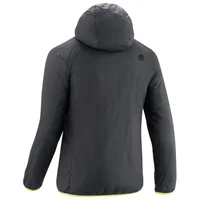 Compact insulated jacket designed to be worn as a light outer layer or a thin midlayer. Packable and easy to store it features an adjustable helmet-compatible hood a water-repellent DWR C-0 finish and hemmed cuffs. Underarm panels provide freedom of movement.