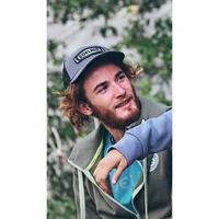 Casual 6-panel trucker cap in muted colors with a straight brim and breathable mesh at the back. The clean front panel is designed to feature a vertical logo or name for a minimal look.