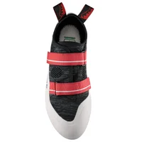 The ultimate rental shoe built for intensive use in climbing gyms. A breathable knitted upper offers comfort while two offset VCR straps provide quick on/off and a secure fit. The reinforced grey non‑marking sole avoids black streaks on walls.