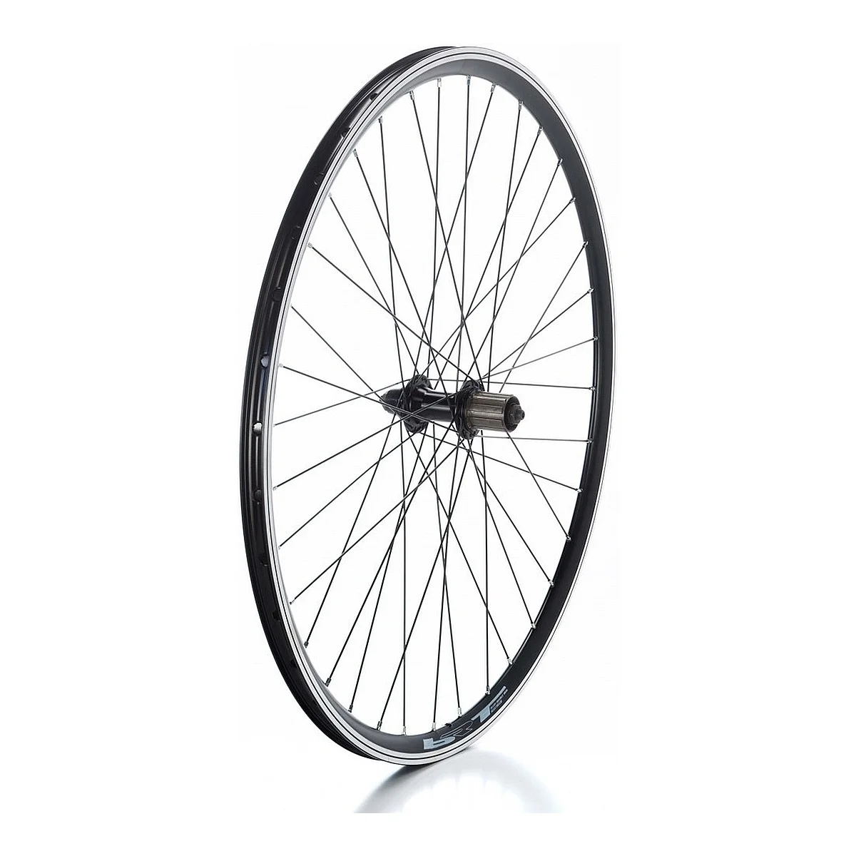 27.5 MTB rear wheel in aluminum for V‑Brake compatible with 8‑10 speed cassettes, durable and reliable.