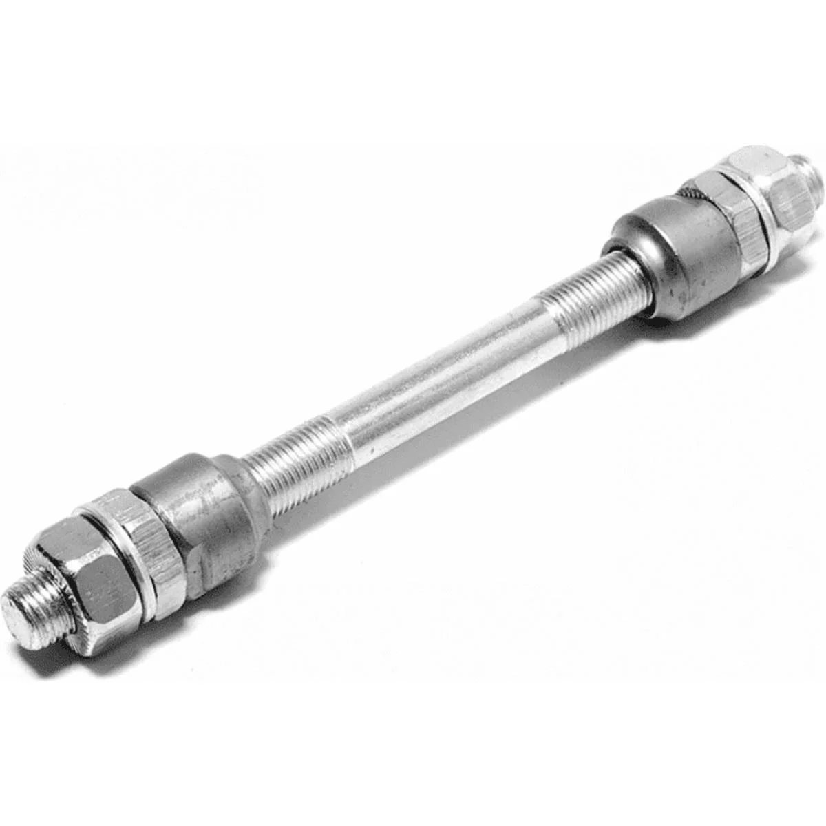 Front hub axle 3/8" length 135 mm with fixing nuts included for secure easy installation.